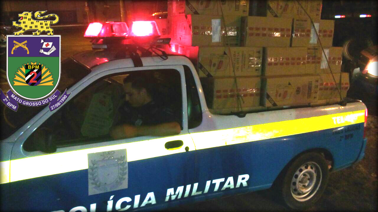 Três Lagoas (MS) – Na tarde de terça-feira (17/08), por volta das 16h30min policiais militares do 2º Batalhão apreenderam 52 caixas de cigarros e recuperaram veículo roubado. Uma guarnição de motos do trânsito em rondas pela área central visualizou