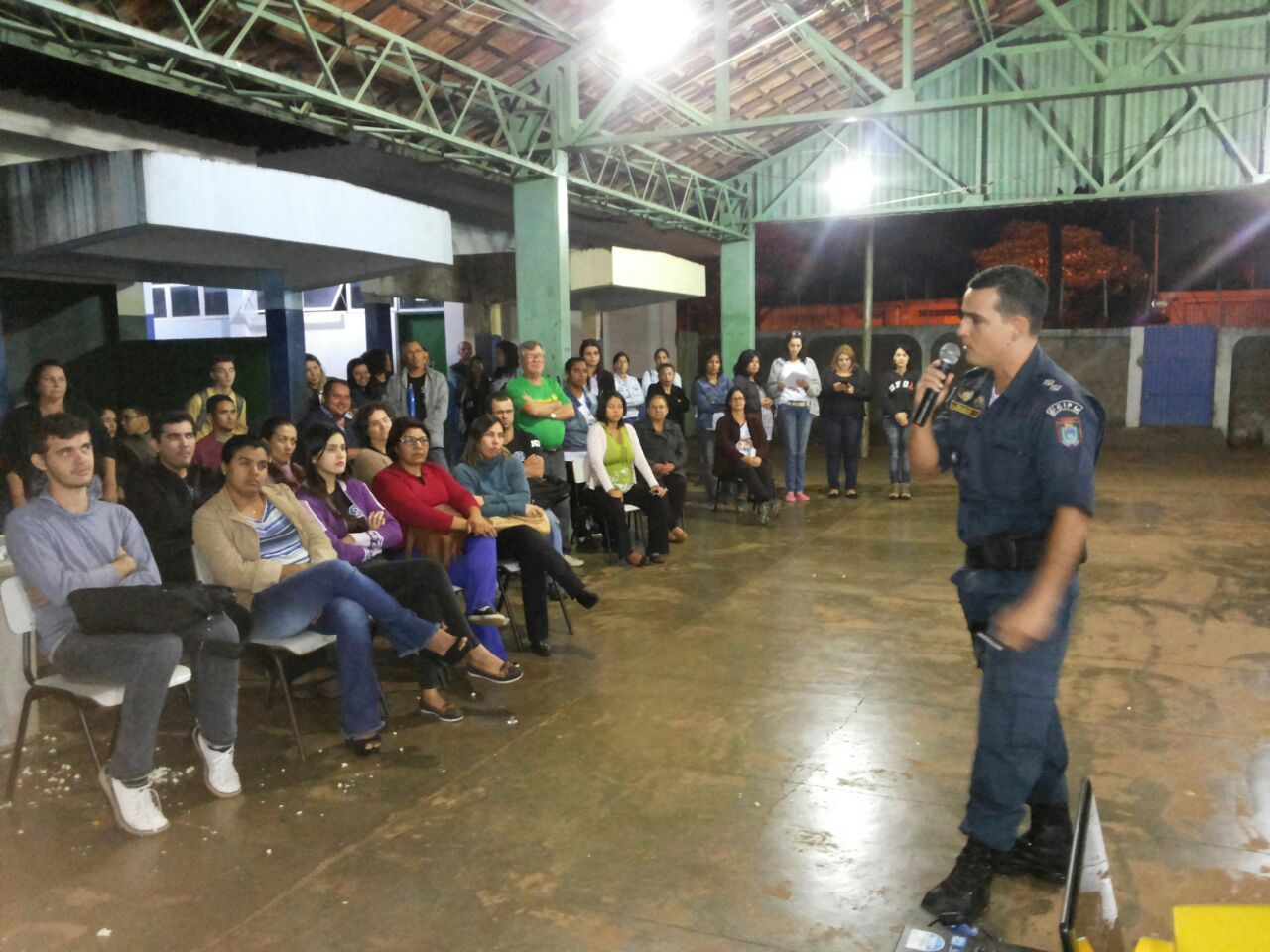 Campo Grande (MS) – O Comandante Interino do Pelotão Tiradentes, 1º Tenente Andrade participou na noite desta quinta-feira (11/08), de uma reunião do Conselho Comunitário de Segurança (CCS) da área do bandeira, na Escola Estadual João Carlos Flores,