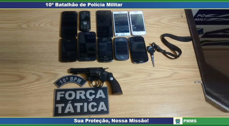 Campo Grande (MS) – Na noite deste domingo (31), por volta das 22h, uma equipe da Força Tática do 10º Batalhão de Polícia Militar, sob a coordenação do Tenente Thelson, prendeu dois autores de roubo, de 22 e 23 anos, recuperou aparelhos de