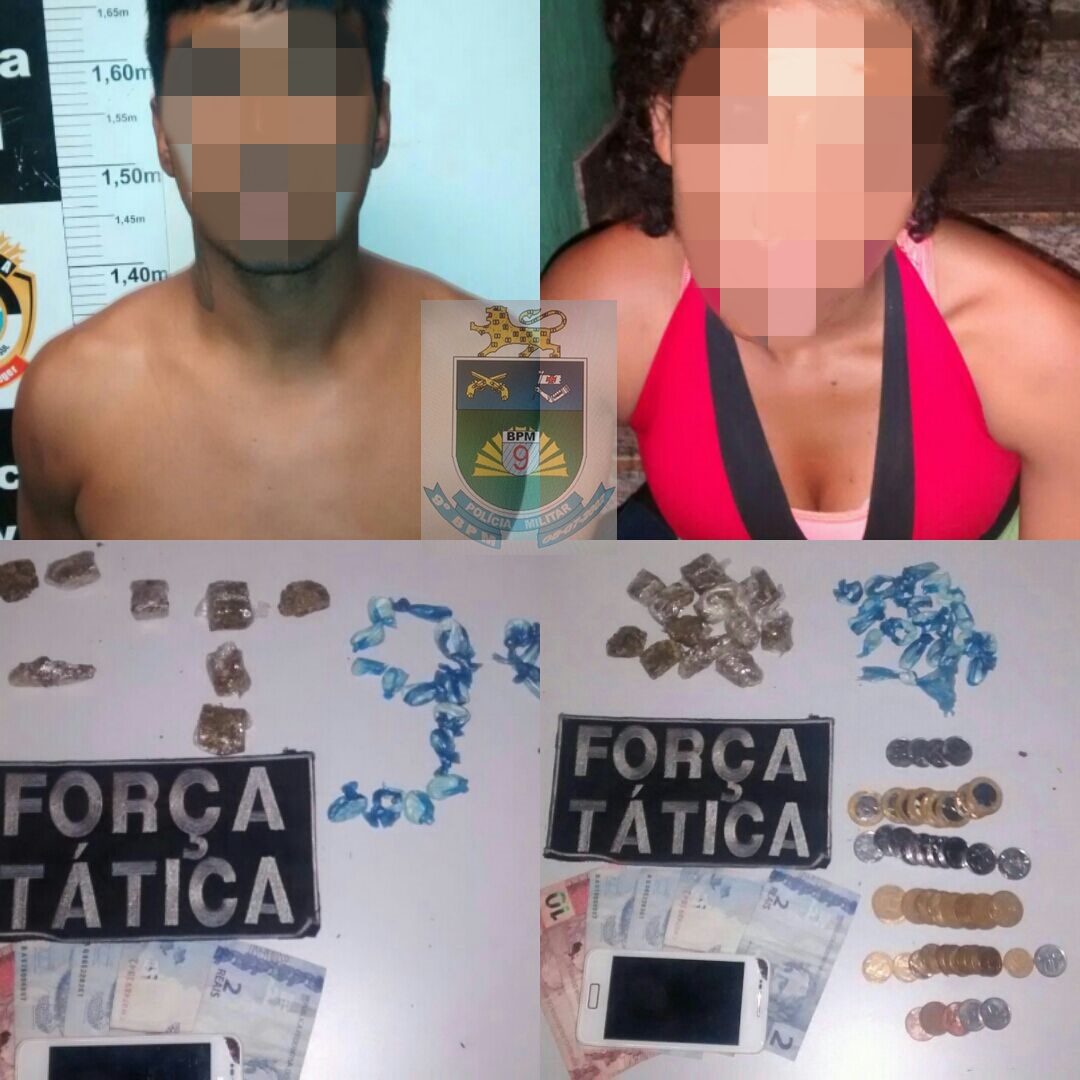 Campo Grande (MS)-Policiais Militares da Força Tática do 9° BPM, prenderam neste sábado (23) um homem de vinte e um anos e uma mulher de vinte e cinco anos de idade, no Bairro Jardim Imperial. Por volta das 16h50, a equipe de serviço, fazia rondas pela