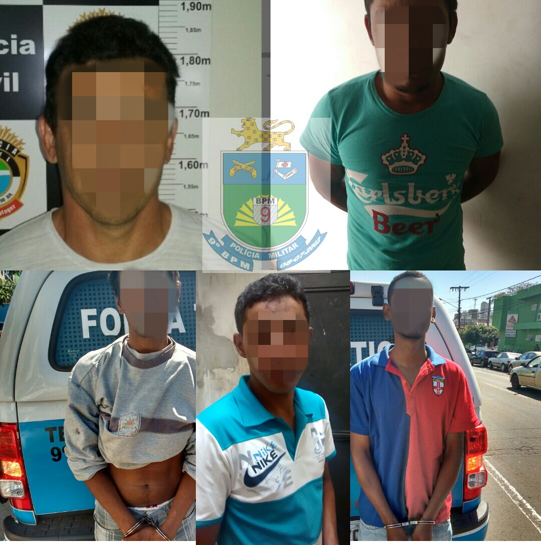 Campo Grande (MS)-Policiais Militares da Força Tática do 9° BPM, prenderam, neste sábado (23), durante o serviço de vinte e quatro horas, cinco homens, com as idades de vinte, trinta e dois, trinta e seis, trinta e oito quarenta e um anos, em