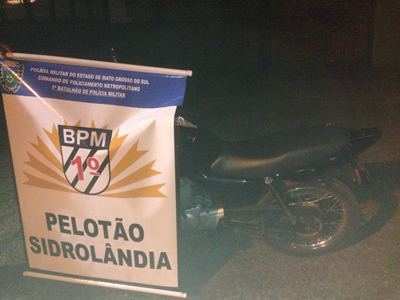 Campo Grande -MS Na madrugada de domingo por volta das 00h20, a equipe Policial do Pelotão Sidrolândia recuperou uma moto no momento em que a vítima estava no pelotão informando o furto. A guarnição foi averiguar uma tentativa de furto de objetos em