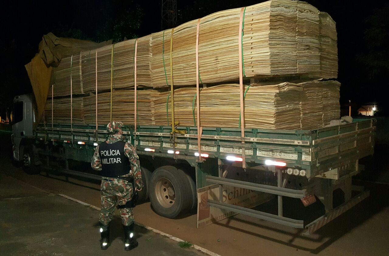Campo Grande (MS) – Policiais Militares Ambientais de São Gabriel do Oeste (MS) deslocaram-se hoje (22) pela manhã, à BR 163, ao serem acionados pela Polícia Rodoviária Federal (PRF) que reteve uma carreta Scania com reboque, carregada de madeira