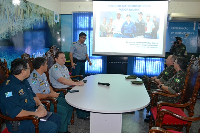 Campo Grande (MS) – O Comandante-Geral da PMMS, coronel Jorge Edgard Judíce Teixeira, recebeu, na manhã de hoje (07), a visita do Inspetor-Geral da Inspetoria Geral das Polícias Militares (IGPM), General de Divisão Glaucio Lucas Alves e sua