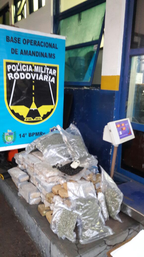 Campo Grande (MS) – A Polícia Militar Rodoviária, através da Base operacional de Amandina, apreendeu 108,4 quilos de maconha e 850 gramas de haxixe na madrugada de hoje, (09). Um homem de 32 anos foi preso por tráfico de drogas. A equipe realizava