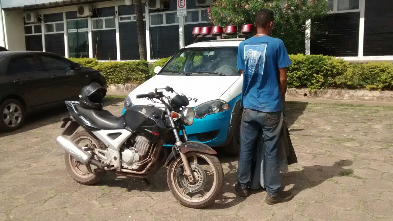 Corumbá (MS)- Nesta sexta-feira (06) por volta das 09:00 a guarnição da Rádio Patrulha de Ladário da Policia Militar recebeu uma denúncia de que havia uma moto roubada no bairro Alta Floresta II, em Ladário. No local a equipe policial realizou