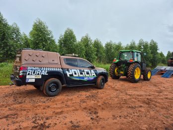 Selvíria (MS): A Polícia Militar Rural de Mato Grosso do Sul, por meio da equipe do Batalhão de Polícia Militar Rural (BPMRu), recuperou na tarde de ontem (26/12), um trator furtado durante diligências realizadas na zona rural do município de Selvíria,