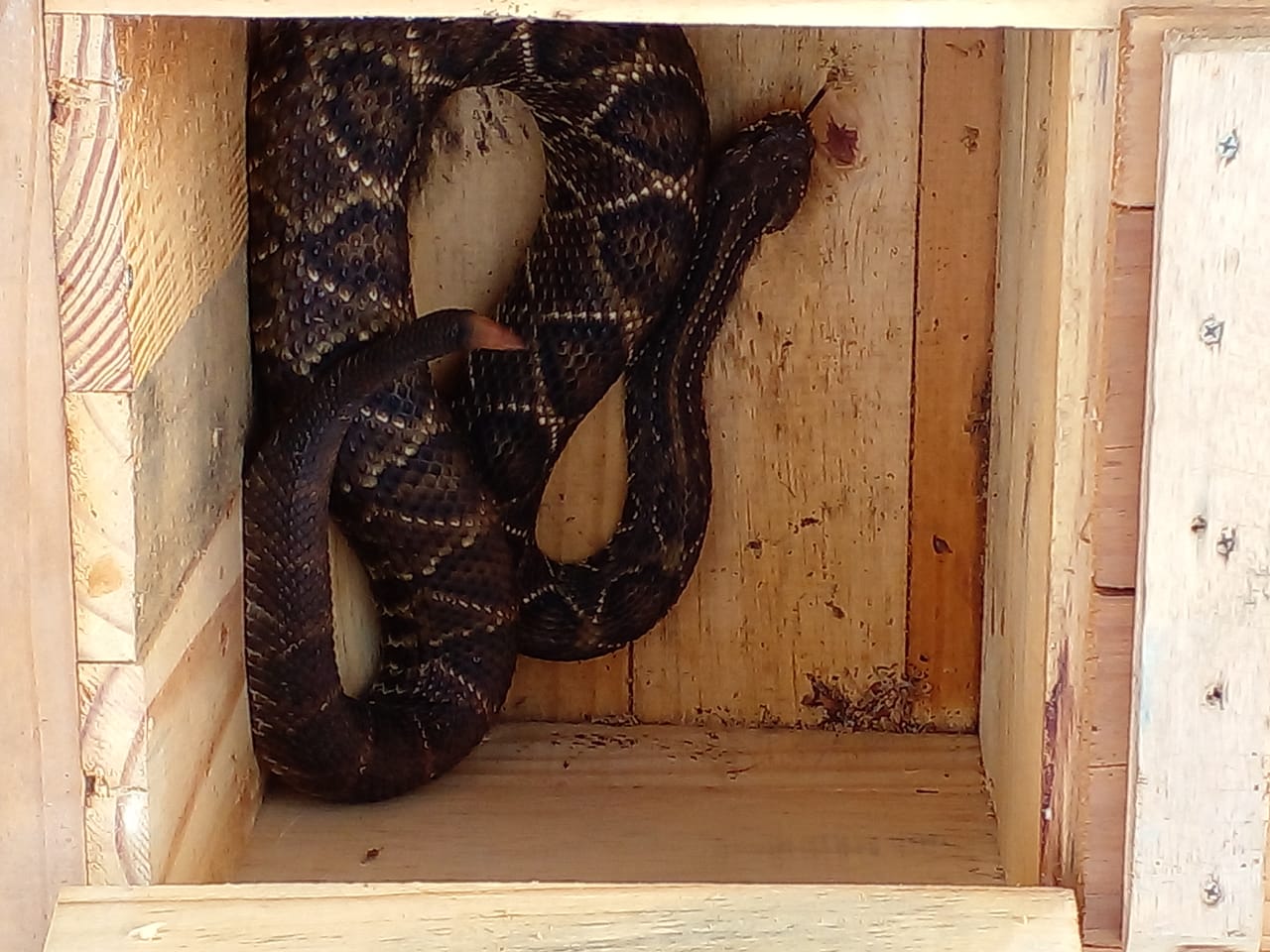 Campo Grande (MS) – Policiais Militares Ambientais de Campo Grande capturaram uma serpente da espécie Crotalus durissus (cascavel), depois de serem acionados hoje (19) às 16h00, por funcionários de uma cerâmica, localizada no anel rodoviário, nas