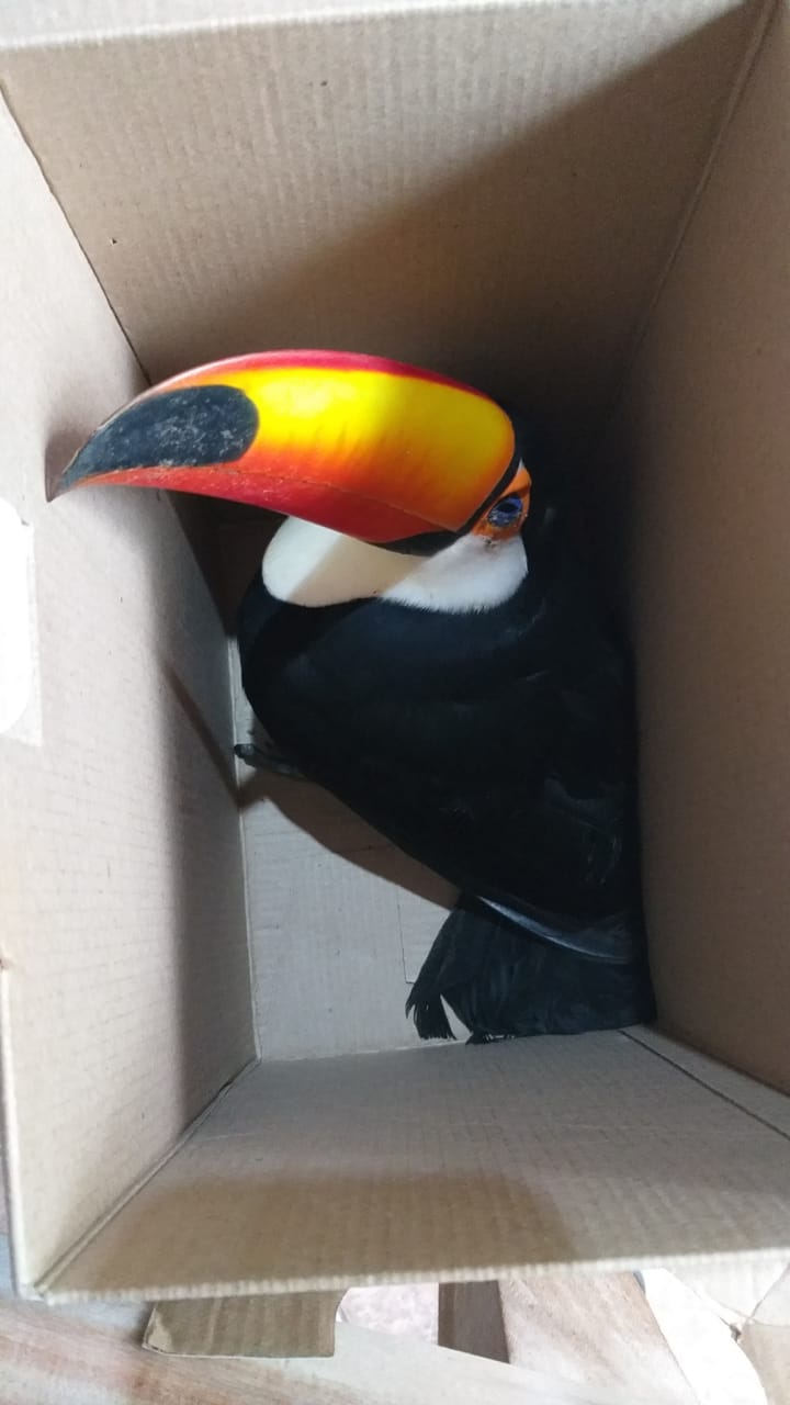 Campo Grande (MS) – Policiais Militares Ambientais de Bela Vista receberam um chamado de uma moradora do bairro Antônio João hoje (18) no final da manhã, em virtude de que um animal da espécie Ramphastos toco, conhecida como tucano havia adentrado
