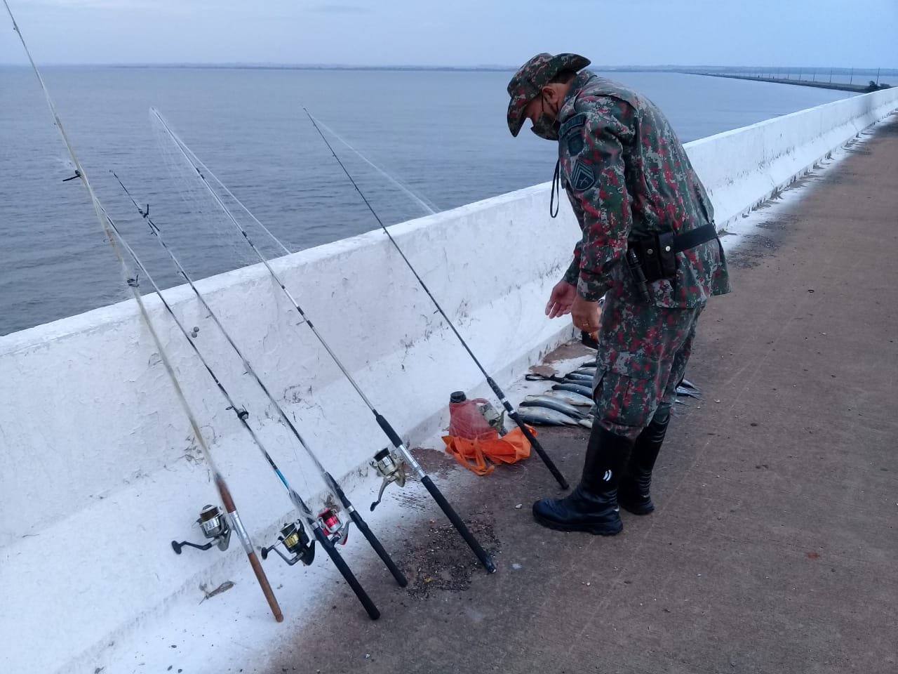 Campo Grande (MS) – Policiais Militares Ambientais de Bataguassu realizavam fiscalização hoje (19) à tarde, próximo à ponte que liga MS ao estado de São Paulo, quando se depararam com dois homens pescando na cabeceira da ponte, localizada na BR