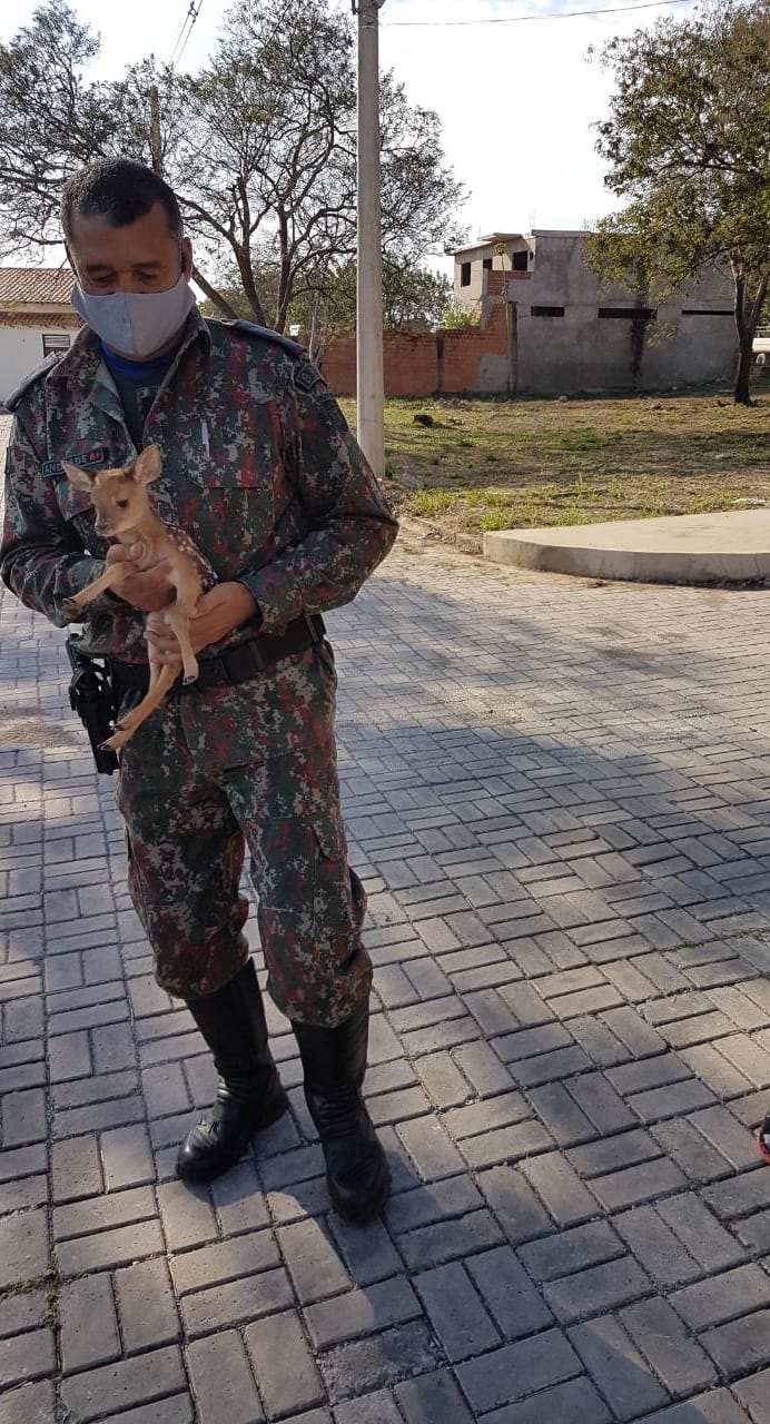 Campo Grande (MS) – Um filhote animal silvestre da espécie Mazama gouazoubira (veado-catingueiro) foi capturado no final da manhã de hoje (18), por Policiais Militares Ambientais de Corumbá. A equipe foi acionada por um morador de um residencial,