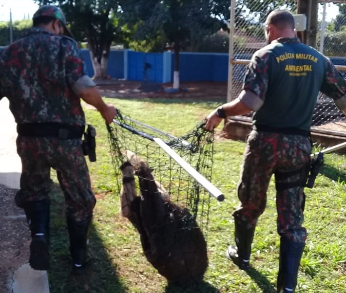 Campo Grande (MS) – Um animal silvestre da espécie Myrmecophaga tridactyla (tamanduá-bandeira) foi capturado ontem (16) à tarde, no pátio da escola municipal São Francisco na cidade, por Policiais Militares Ambientais de Rio Negro. Uma professora da