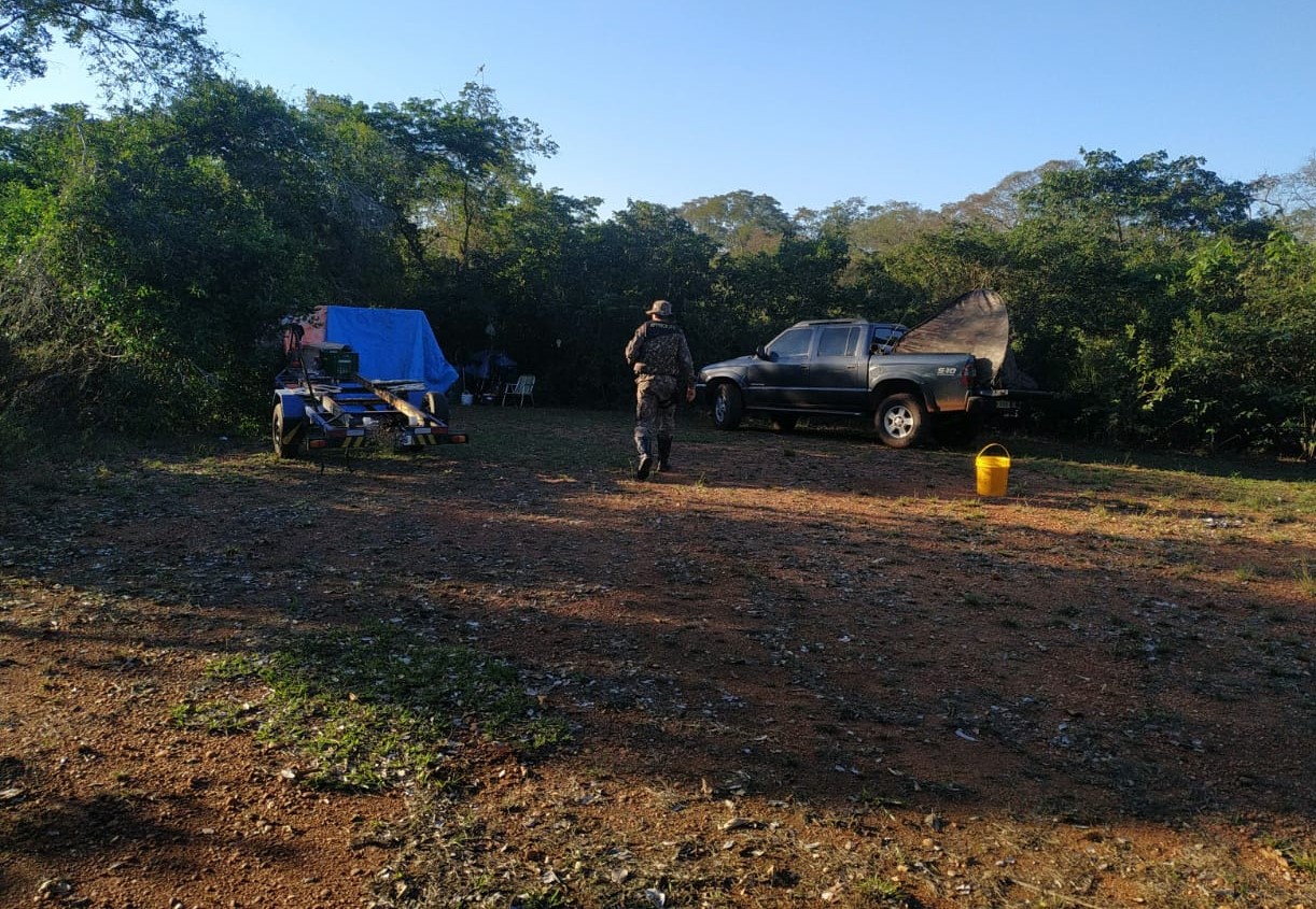 Campo Grande (MS) – Policiais Militares Ambientais de Batayporã realizavam fiscalização no rio Ivinhema, nas proximidades da foz do Ribeirão Papagaio, no município de Nova Alvorada do Sul e localizaram ontem (15) um acampamento de pesca dentro da