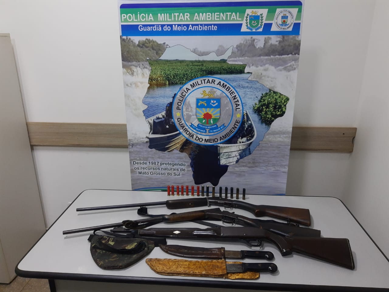 Campo Grande (MS) – Policiais Militares Ambientais de Naviraí, que trabalham na operação Hórus, prenderam dois caçadores, de 50 e 53 anos, ontem (12) no final da tarde, em prática de caça ilegal, com armas e munições ilegais, em uma estrada da