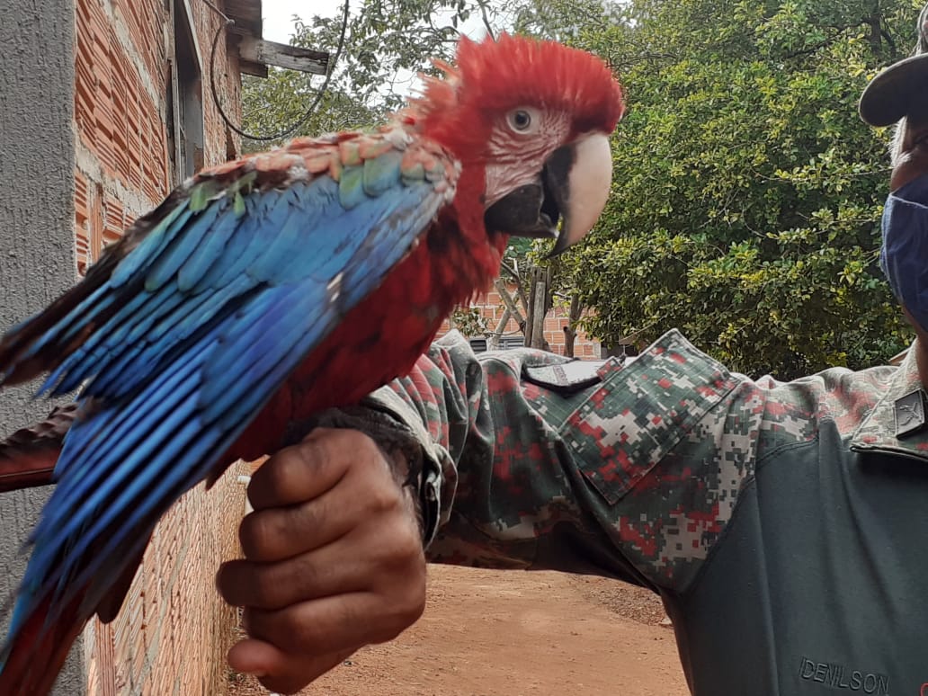 Campo Grande (MS) – A Policia Militar Ambiental de Bonito recebeu e resgatou, desde ontem à tarde e hoje (9) pela manhã, três animais. Hoje (9), um morador do centro da cidade, acionou a Polícia Militar Ambiental, informando que uma arara-vermelha