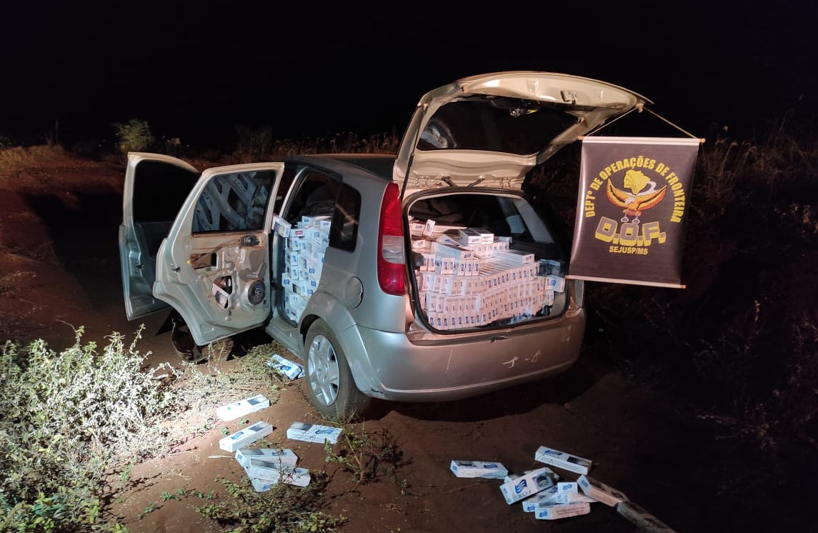 Maracaju (MS) – Policiais do Departamento de Operações de Fronteira (DOF) apreenderam, na noite de ontem (20.05) um veículo Ford Fiesta carregado com 1500 pacotes de cigarros contrabandeados do Paraguai. A ação ocorreu em virtude da Operação Hórus,