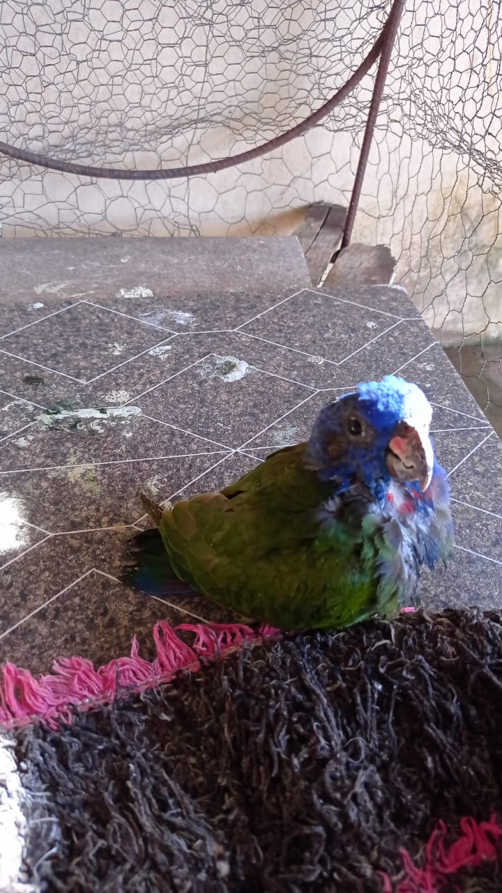 Campo Grande (MS) – Moradora da região central de Costa Rica, telefonou à Polícia Militar Ambiental do Município hoje (19), informando que uma ave da espécie Maitaca-de-cabeça-azul (Pionus menstruus) encontrava-se ferida nas proximidades da sua
