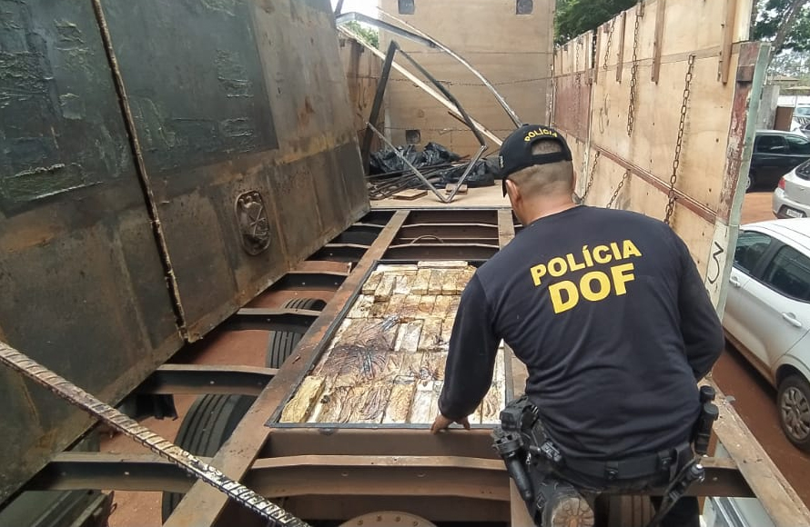 Campo Grande (MS) – Policiais do Departamento de Operações de Fronteira (DOF) apreenderam, na madrugada de hoje (13.05), uma carreta Scania de cor azul, com placas do Paraguai, que estava carregada com arroz, tendo um fundo falso no semirreboque, onde