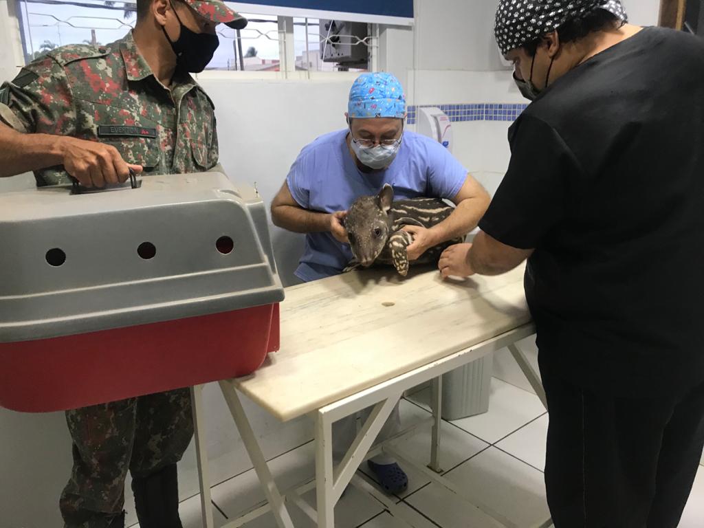Campo Grande (MS) – Policiais Militares de Batayporã receberam um agricultor de 34 anos no quartel ontem (6) à tarde, que estava com um filhote de animal silvestre da espécie anta (Tapirus terrestres) com ferimentos. O agricultor solicitava socorro para