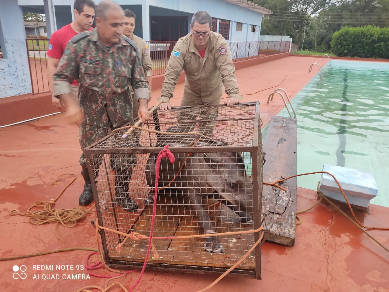 Campo Grande (MS) – Policiais Militares de Dourados e uma equipe dos Bombeiros de Maracaju resgataram ontem (06.05) um animal silvestre da espécie anta (Tapirus terrestres), que havia caído dentro de uma piscina do clube dos funcionários públicos