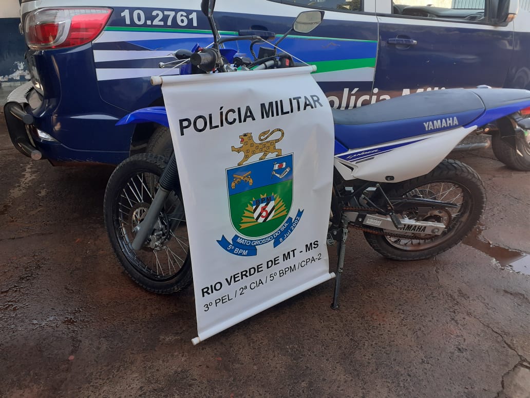Coxim (MS) – A Polícia Militar de Rio Verde de MT/MS recuperou na noite do dia (02/05), uma moto furtada de Coxim. A Guarnição de Serviço foi acionada após denúncia para verificar uma moto abandonada. Imediatamente os militares foram ao local na