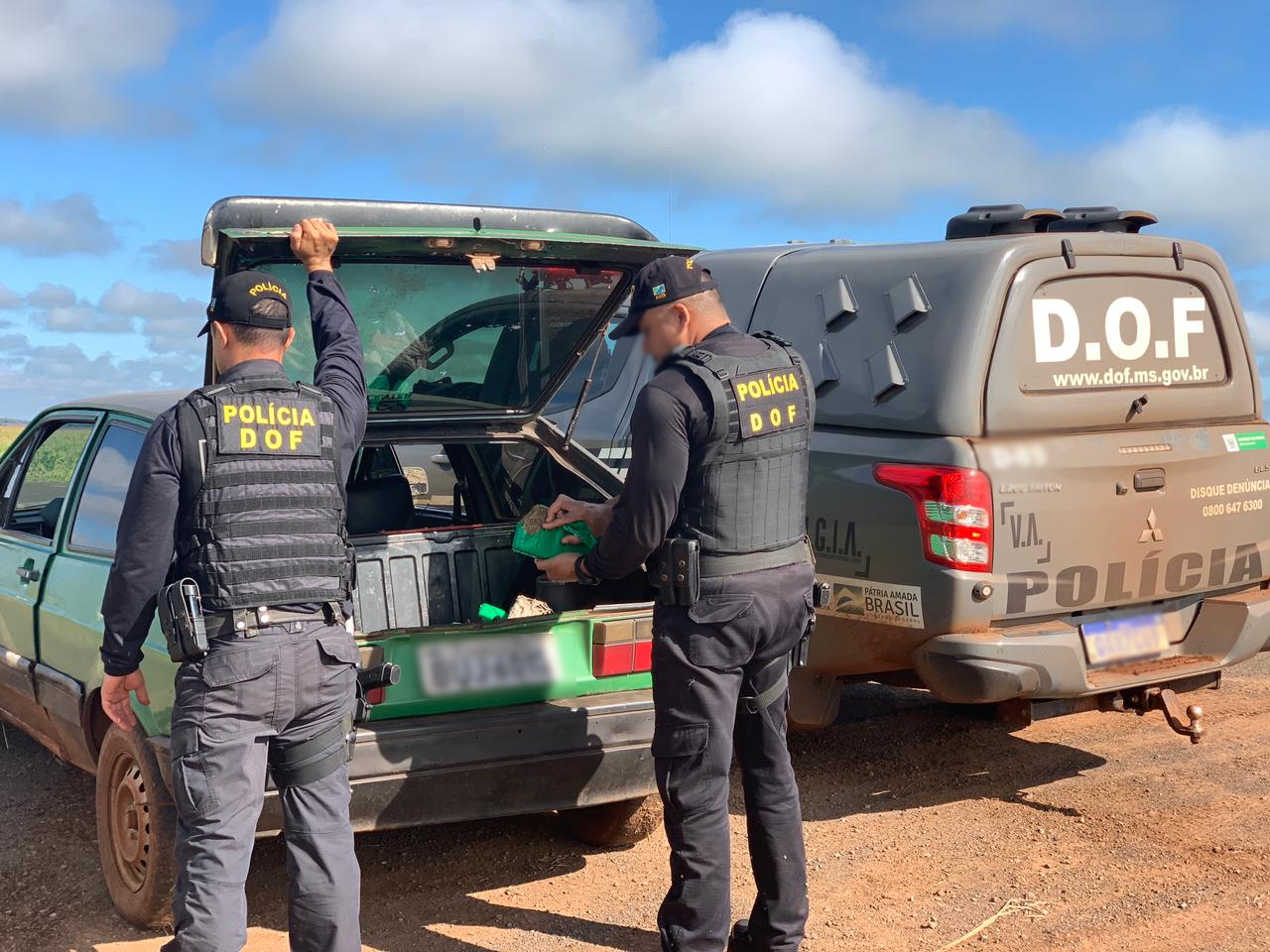 Laguna Carapã (MS), 26 de abril – Policiais do Departamento de Operações de Fronteira (DOF) apreenderam, na manhã de ontem, um veículo VW Gol, de cor verde, carregado com 29,9 quilos de maconha. A ação ocorreu em virtude da Operação Hórus,