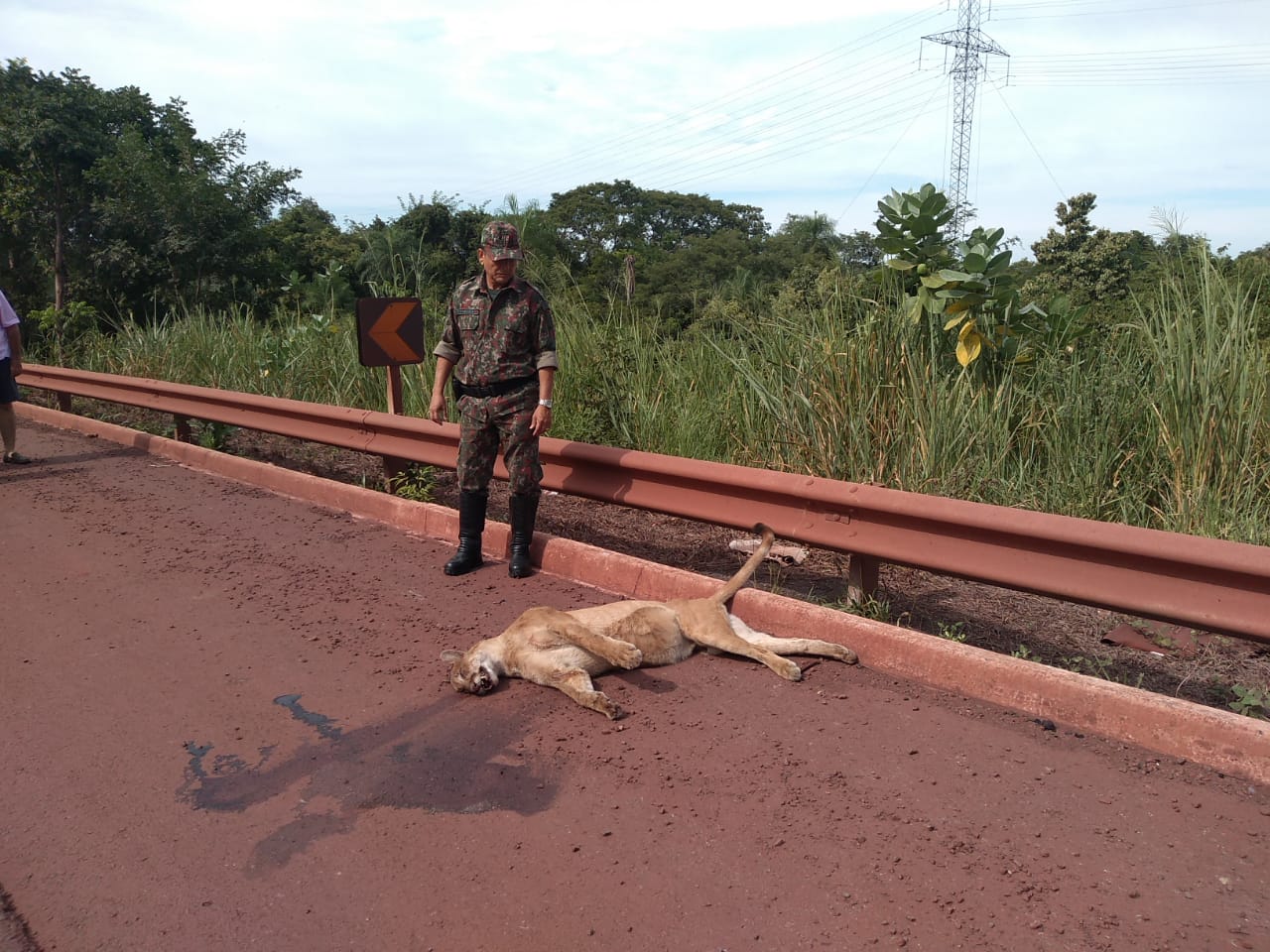 Campo Grande (MS) – Policiais Militares Ambientais de Corumbá receberam informação hoje (23.04) pela manhã, de que à margem da rodovia BR 262, próximo ao assentamento Mato Grande, na altura do km 734, havia uma onça-parda que teria sido