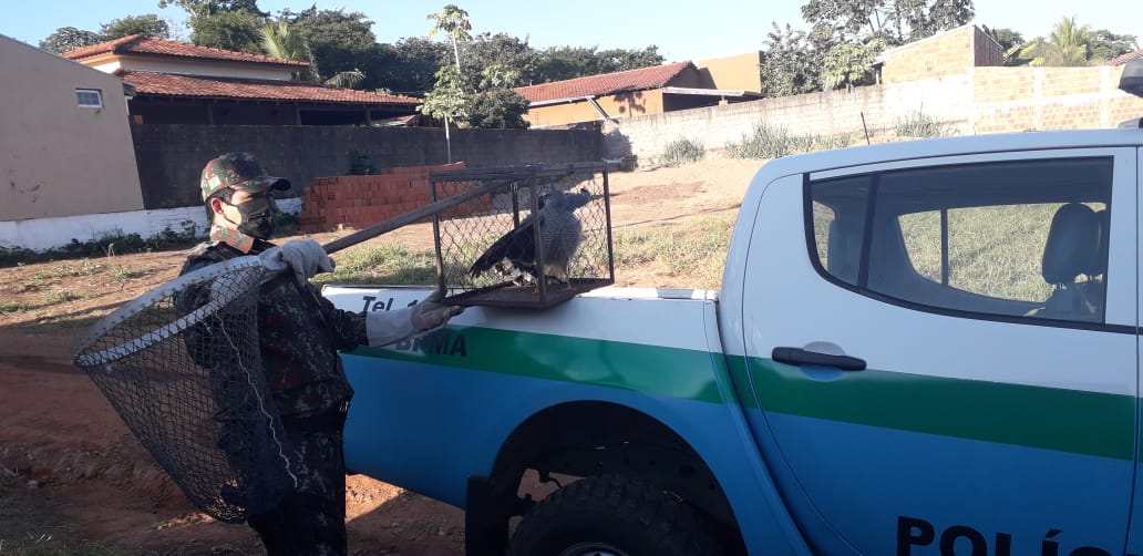 Campo Grande (MS) – Uma moradora do bairro Aparecida telefonou para os Policiais Militares Ambientais de Miranda hoje (19) à tarde, informando que havia um gavião em uma árvore laranjeira no quintal de sua residência e aparentava estar ferido. A