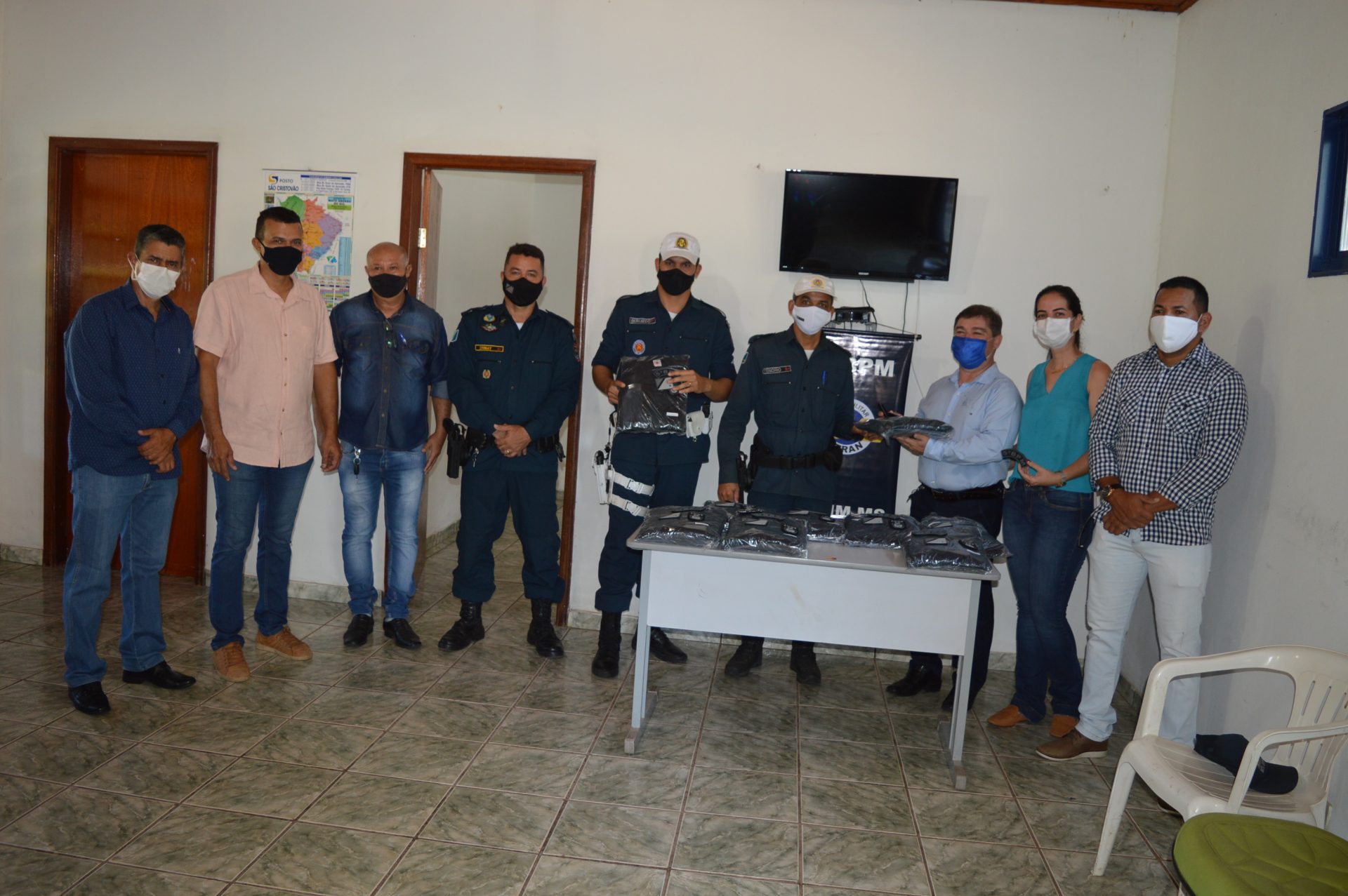 Coxim (MS): A Polícia Militar em parceria com a Prefeitura Municipal de Coxim realizaram na manhã de hoje (12/04), a entrega dos fardamentos aos policiais militares do Grupamento de Trânsito (Gtran). O fardamento foi entregue para todos policiais militares