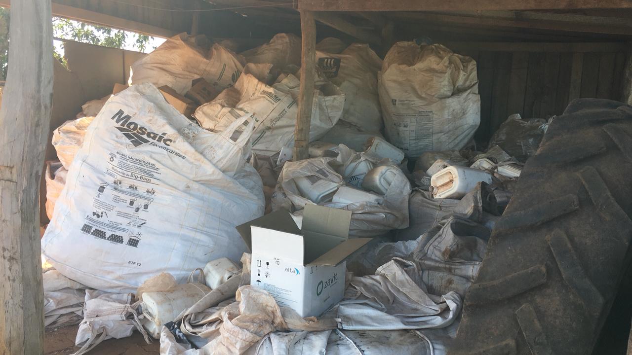 Campo Grande (MS) – A Polícia Militar Ambiental de Porto Murtinho autuou uma empresa produtora rural por disposição de forma inadequada de várias embalagens e agrotóxicos. A PMA localizou a infração, quando realizava fiscalização em uma fazenda no