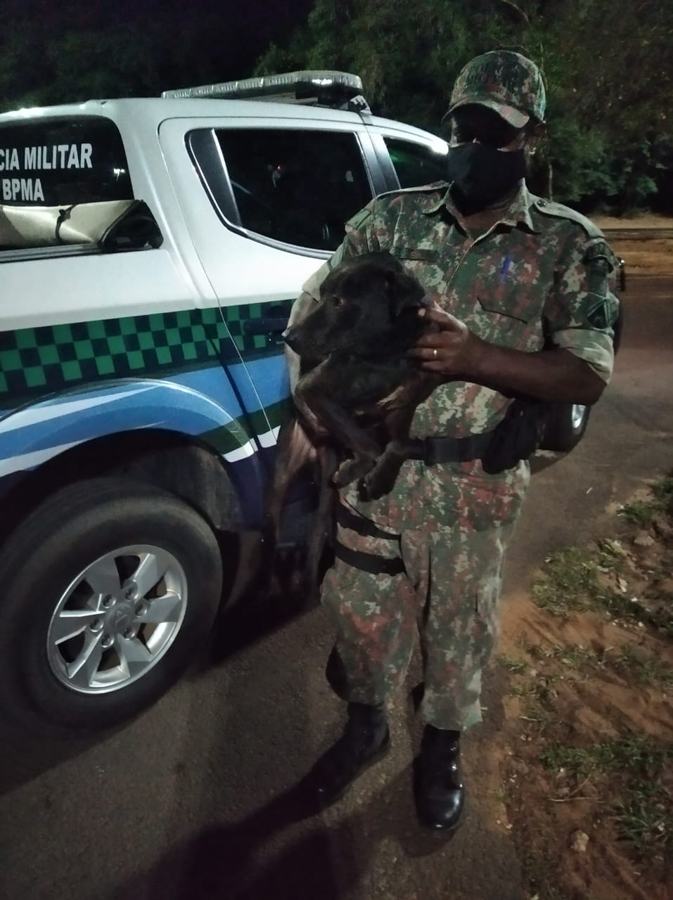 Campo Grande (MS) – Uma equipe da Polícia Militar Ambiental de Campo Grande passava pelo Parque dos Poderes ontem (1) às 21h00 e percebeu um cachorro aparentando desnutrição e com alguma dificuldade de locomoção. A equipe conseguiu capturar o animal e