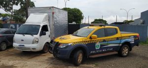 Amambai/MS – Na manhã do dia 13/10 (quarta-feira), policiais militares da Base Operacional de Amambai (PMR), realizavam fiscalização de rotina na MS 156 km 71, no trecho entre Amambai e Caarapó, quando foi dada ordem de parada a um veículo tipo Caminhão Bau/Kia, porém o condutor do veículo não obedeceu a ordem emanada pelos agentes, vindo a seguir fuga pela rodovia. A equipe efetuou o acompanhamento tático do veículo, que após alguns quilômetros adentrou em uma estrada que da acesso a fazenda IMBU e abandonou o veículo, tomando rumo ignorado. Apesar do esforço dos militares, o autor do delito não foi localizado.