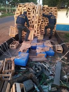 A apreensão ocorreu enquanto a equipe da Polícia Militar Rodoviária realizava policiamento ostensivo na MS 134, quando observaram um caminhão VW/24.250, com placas de Eunápolis – BA, e um veículo VW/Gol, com placas de Uberaba – MG, parados próximo a entrada de um assentamento, onde seus ocupantes, três homens com idades entre 35 e 51 anos, realizavam amarração de uma carga de caixas de madeira no caminhão. Os policiais da PMR resolveram abordá-los e diante de informações desencontradas, foi feito uma busca minuciosa no veículo, onde obtiveram êxito em localizar abaixo da carga de caixas, diversos fardos da maconha.