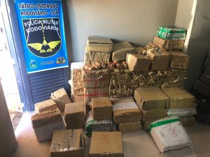 Sidrolândia (MS) – Durante a Operação Hórus, desencadeada pela SEJUSP/MS e pela Secretaria Nacional de Operações Integradas (SEOPI) do Ministério de Justiça e Segurança Pública, a Polícia Militar Rodoviária apreendeu na manhã desta segunda-feira (11), na MS 162 em Sidrolândia – MS, 1560 kg de maconha, após traficante com caminhonete ostentando placas frias furar bloqueio policial.