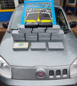 A apreensão ocorreu enquanto uma equipe da Policia Militar Rodoviária fazia policiamento ostensivo naquela rodovia. Ao abordarem o veículo Fiat/Uno com placas de Esteio – RS, sendo conduzida por um gaúcho de 41 anos, foi levantada suspeita acerca dos motivos de sua viagem, o que levaram os policiais a realizarem uma busca minuciosa no veículo. A equipe da PMR obteve êxito em localizar em um compartimento oculto no painel, 3 tabletes de cocaína e 20 de pasta base, totalizando quase 24kg de entorpecentes. O autor confessou ter pego o carro preparado na fronteira e que o levaria para Campo Grande pelo valor de 5 mil reais.