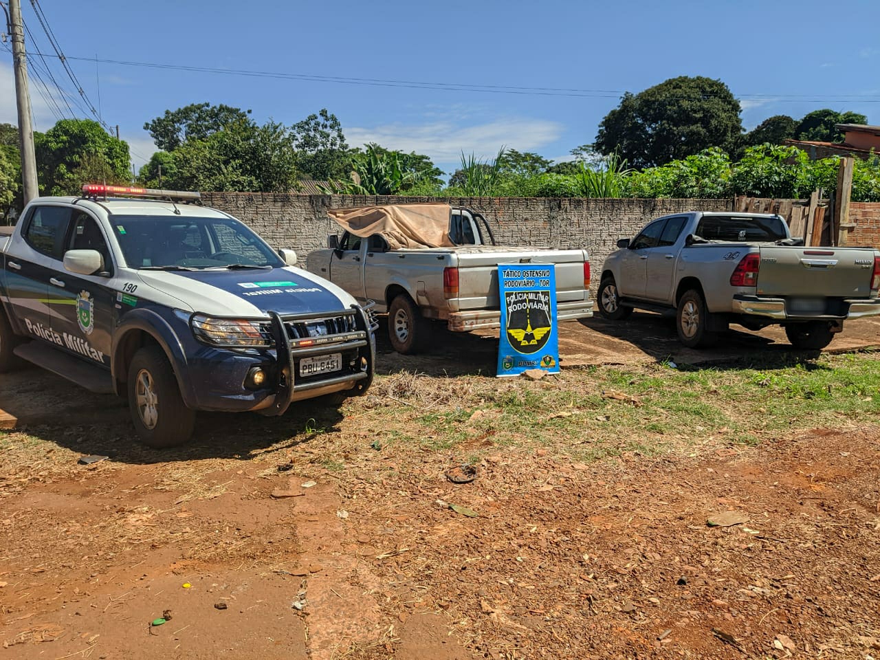 O fato ocorreu quando a equipe da Polícia Militar Rodoviária deslocava pela BR 163 e ao chegar na rotatória com a BR 463, uma caminhonete Toyota/Hilux, com placas de Dourados – MS, ao visualizar a viatura, adentrou em um estacionamento de um restaurante próximo, logo em seguida uma caminhonete Ford/F-1000, com placas de Guia Lopes da Laguna – MS, virou bruscamente na mesma rotatória e entrou na área urbana de Dourados. A equipe da PMR suspeitou dos comportamentos e diligenciou na região para localizar o veículo F-1000. A equipe encontrou próximo dali o veículo abandonado com a chave na ignição. Foi constatado que o veículo estava carregado com agrotóxicos e em seu interior possuía um radio comunicador ligado. Imediatamente a equipe retornou ao restaurante para abordar o condutor da Hilux, onde o mesmo almoçava. Foi solicitado para que abrisse o veículo, onde foi constatado que ele também possuía um radio comunicador sintonizado na mesma freqüência e posteriormente acabou confessando que fazia o serviço de batedor para a carga de agrotóxicos.