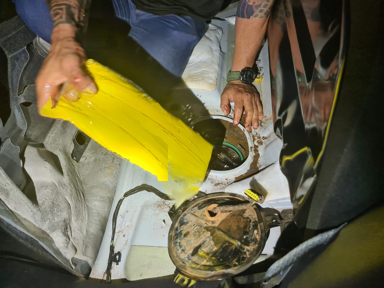 Polícia Militar Rodoviária com apoio do Batalhão de Polícia Militar de Choque, apreende droga em tanque de combustível de veículo durante Operação Hórus