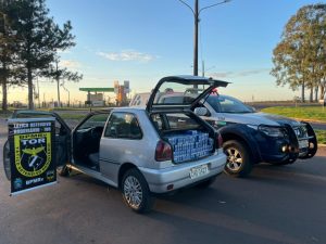 O veículo foi apreendido juntamente com os cigarros e serão encaminhados a Receita Federal de Ponta Porã/MS.