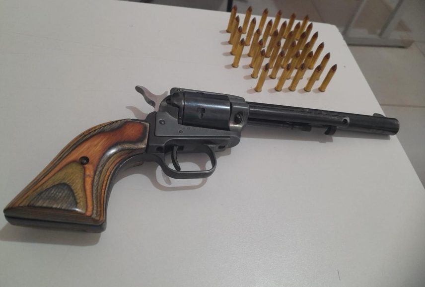 Perguntado sobre a arma, o homem relatou ser de sua propriedade porém, não apresentou registro ou qualquer documentação que a legalizasse.