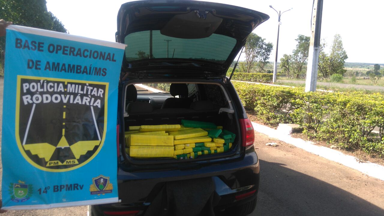 Campo Grande (MS) – A Polícia Militar Rodoviária, através da Base Operacional de Amambai, apreendeu duzentos e dez quilos de maconha em um veículo que furou bloqueio policial na tarde do dia 23 de outubro. Um homem de 40 anos foi preso pelo crime de