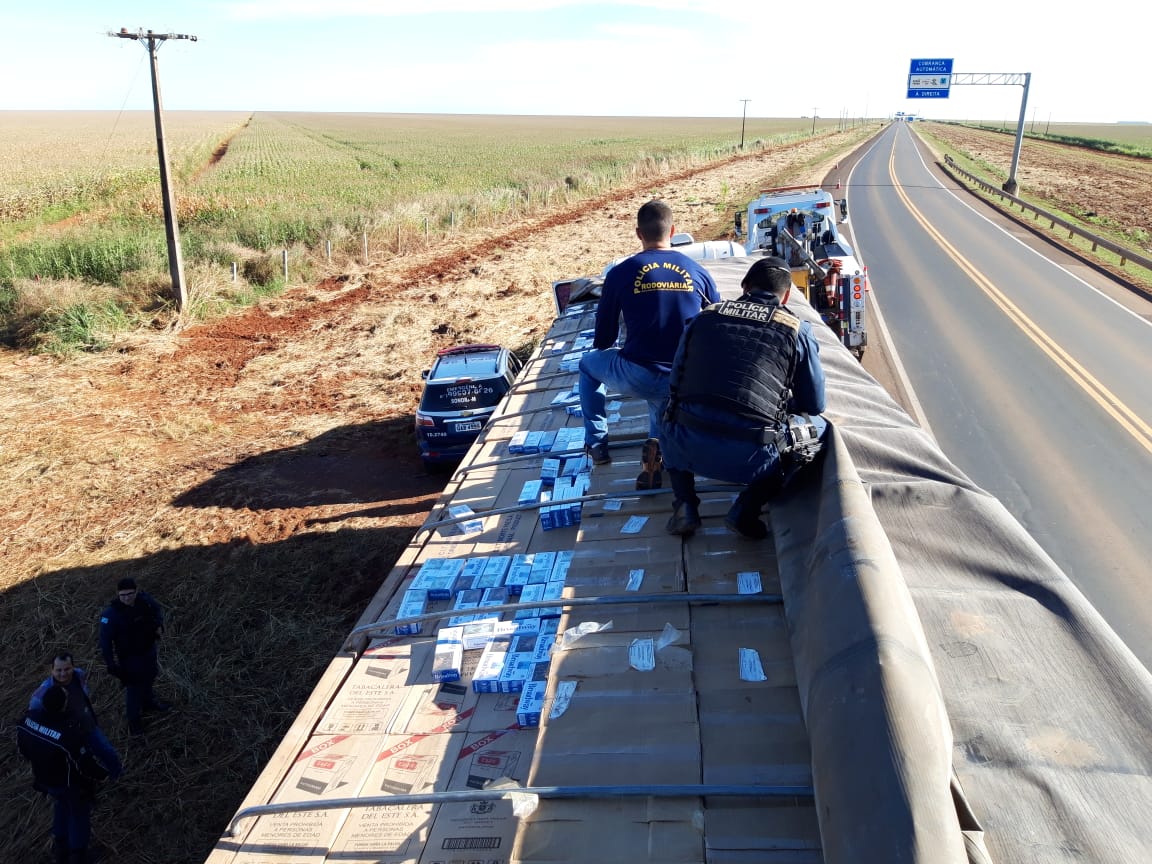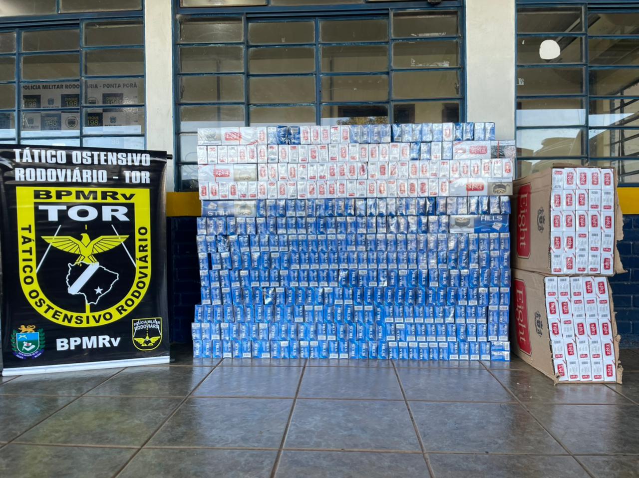 Batayporã (MS) – Após denúncia anônima na noite deste domingo (30), ação conjunta entre a Polícia Militar de Nova Andradina e Polícia Militar Rodoviária (PMR) desencadeou na apreensão de uma carga de 20.000 pacotes de cigarros contrabandeados do