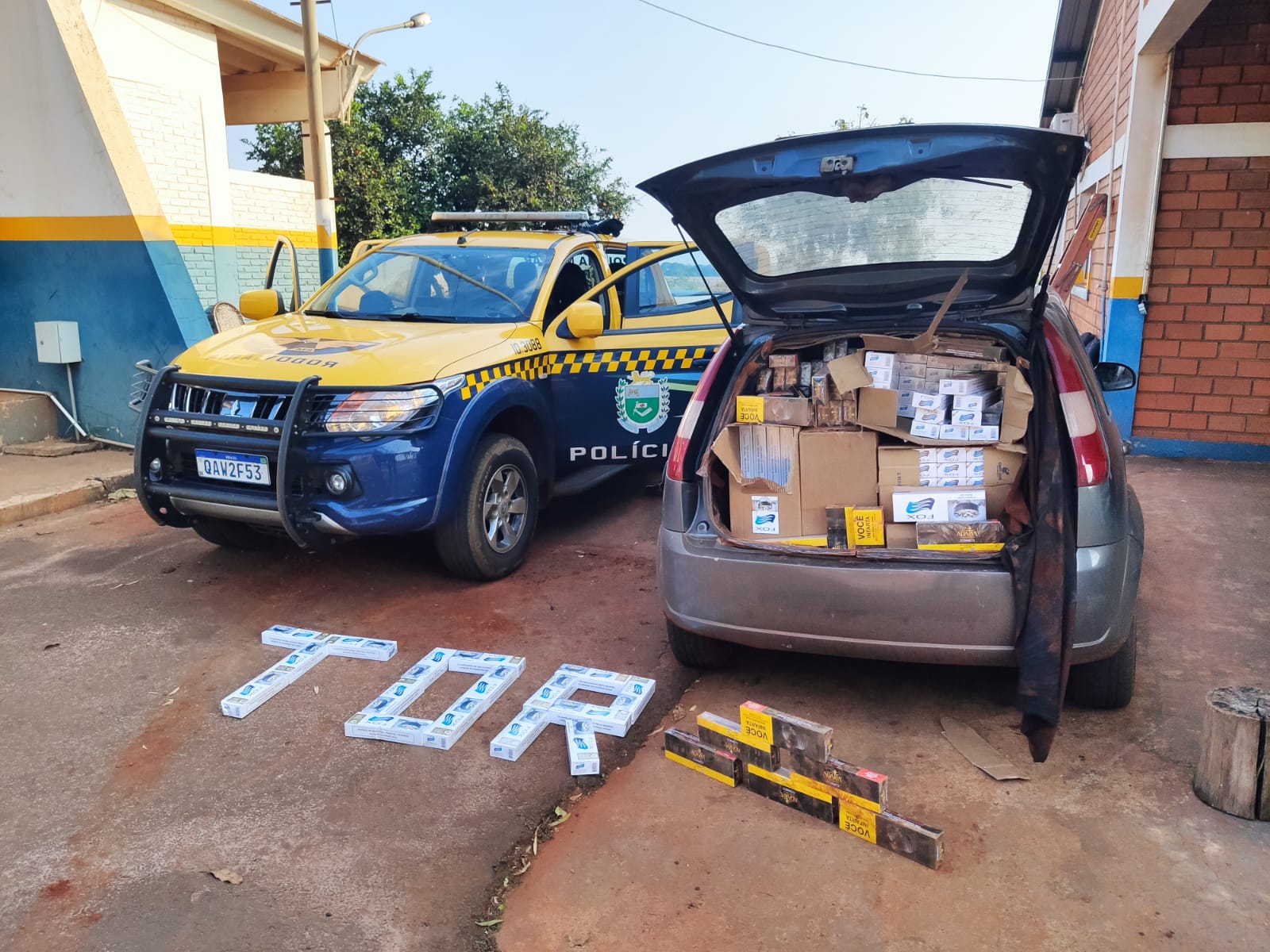 Maracaju (MS) – Por volta das 12h de ontem (18), no Município de Maracaju, a Polícia Militar Rodoviária (PMR) apreendeu um veículo Kadett, placas de Campo Grande (MS), carregado com 10 mil maços de cigarros oriundos do Paraguai. O flagrante ocorreu