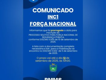 Campo Grande (MS) – A Polícia Militar do Estado de Mato Grosso Do Sul (PMMS), torna público o Edital regulando o Processo Seletivo Interno para o ingresso de dependentes dos integrantes da PMMS no Colégio Militar de Campo Grande (CMCG), como discente no
