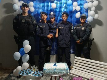 Coxim (MS) – Na tarde deste sábado (13/09), a Guarnição de Serviço da Polícia Militar, composta pelo Soldado Fernando Mari e Soldado Graciely, realizou um policiamento comunitário especial durante a comemoração de aniversário da pequena Denise, que