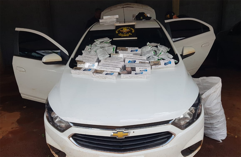 Campo Grande (MS), 20 de fevereiro – Policiais do Departamento de Operações de Fronteira (DOF) apreenderam, na tarde desta quinta-feira, um GM Prisma de cor branca e placas de Belo Horizonte (MG) carregado com 110 quilos de agrotóxicos e 2.150 pacotes de