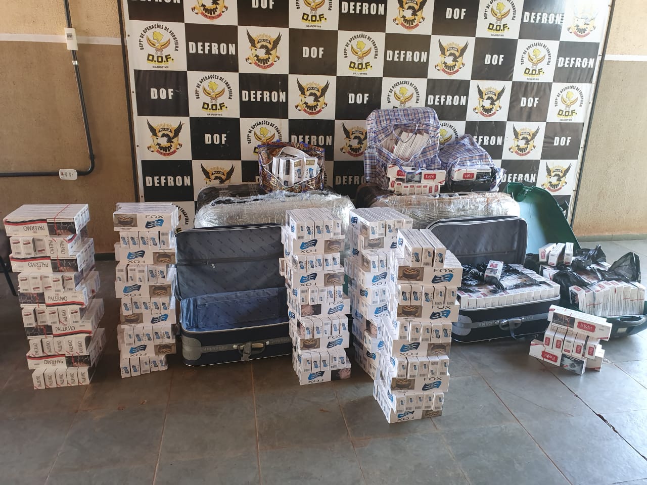Dourados (MS), 22 de fevereiro – Policiais do Departamento de Operações de Fronteira (DOF) apreenderam, na manhã deste sábado, 628 pacotes de cigarros contrabandeados do Paraguai, mais dois volumes prensados de jaquetas, com peso total de 400 quilos. A