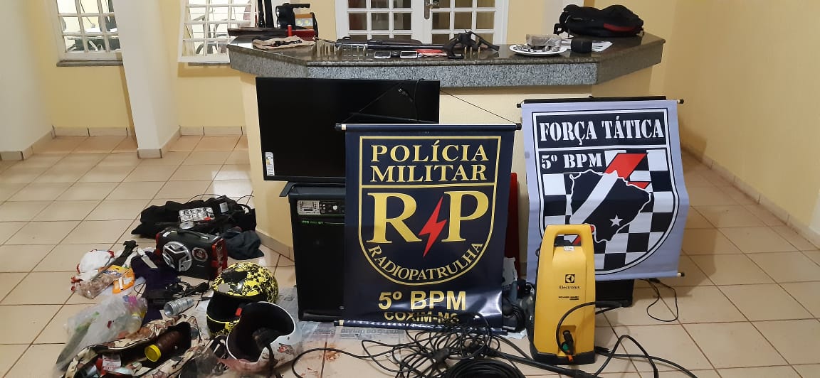 Coxim (MS) – A Polícia Militar de Coxim na madrugada de hoje (21/02), apreendeu duas armas de fogo, recuperou produtos furtados e prendeu autor de 18 anos por tráfico de drogas, furto, direção perigosa e desobediência. As guarnições de rádio