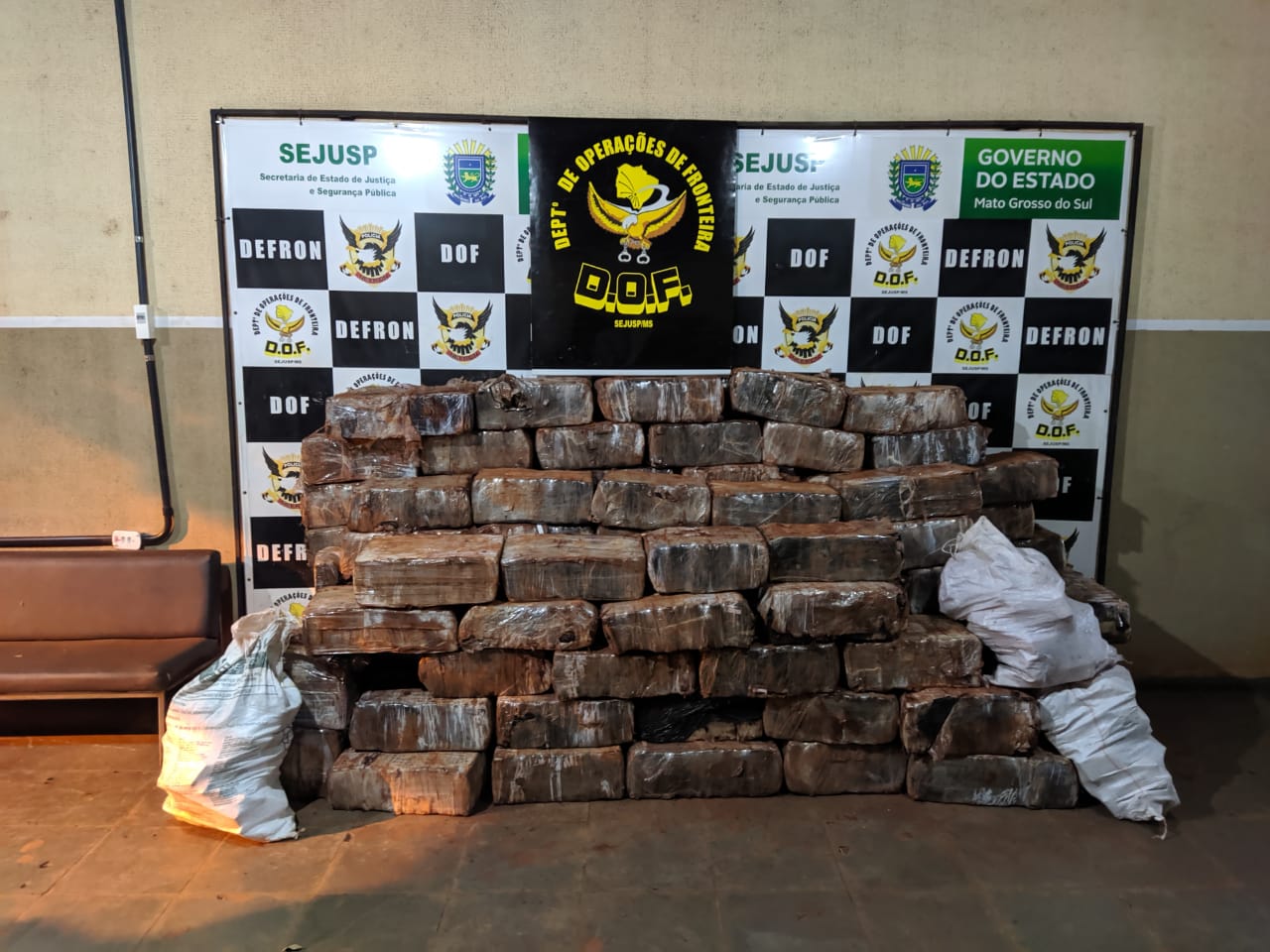 Amambai (MS), 15 de dezembro – Policiais do Departamento de Operações de Fronteira (DOF) apreenderam, na tarde de ontem (domingo), vários fardos prensados de maconha, com peso total de três mil e quinhentos quilos. A apreensão ocorreu durante o