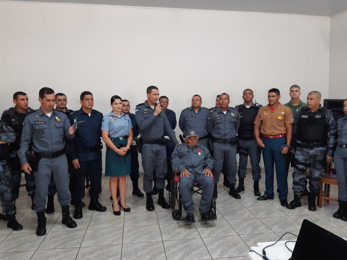 Coxim (MS) – Na manhã do dia (07/12) os policiais militares do Estado de Mato Grosso e do 5º Batalhão de Polícia Militar realizaram uma homenagem ao Cabo Benedito Cassiano Alvarenga, militar este mais antigo na atualidade. A homenagem foi realizada no