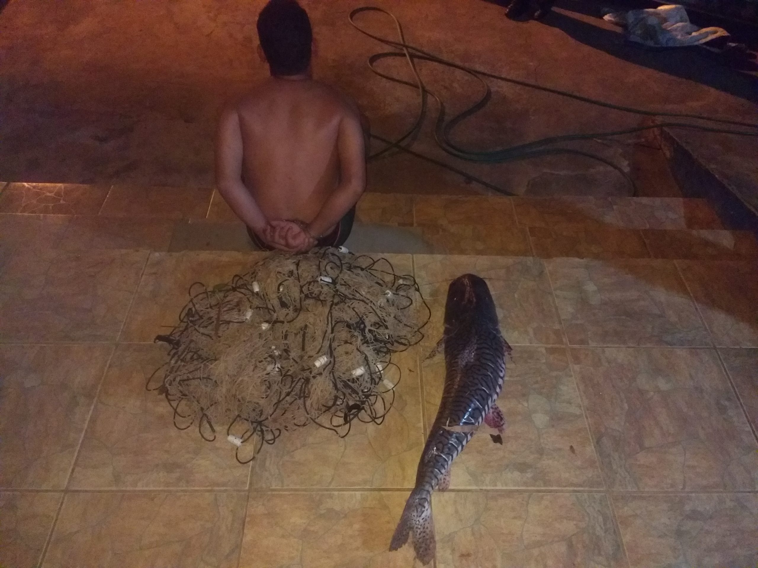 Campo Grande (MS) – Policiais Militares Ambientais de Aquidauana realizavam fiscalização ontem (2) à noite no rio Aquidauana, no local conhecido como Ilha do Pescador, e flagraram dois infratores em uma embarcação praticando pesca com rede (petrecho